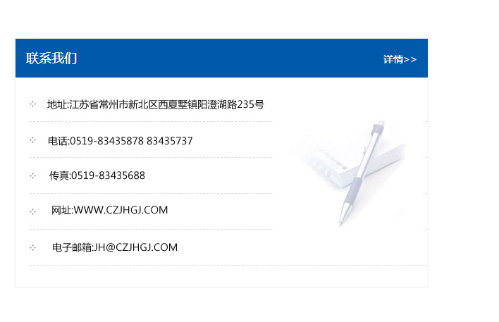 傳真:0519-83435688    郵編:213135    網址:WWW.czjhgj_com.yzhktxw.com    電子郵箱:JH@czjhgj_com.yzhktxw.com